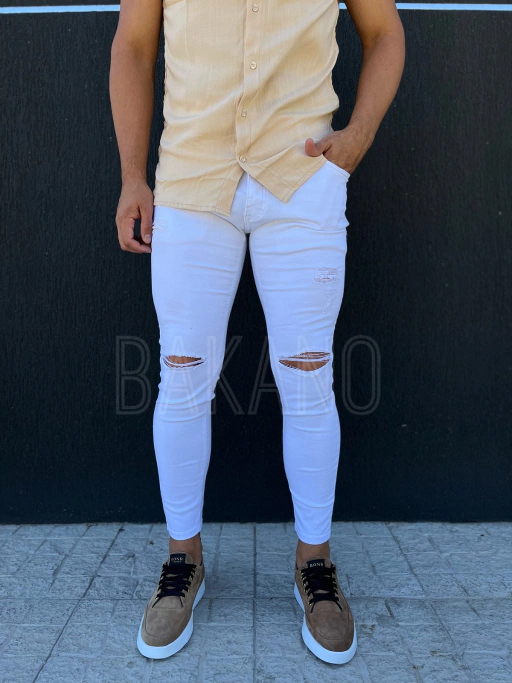 Parate y junta los pies. Después, medí la parte más ancha de tu cadera.